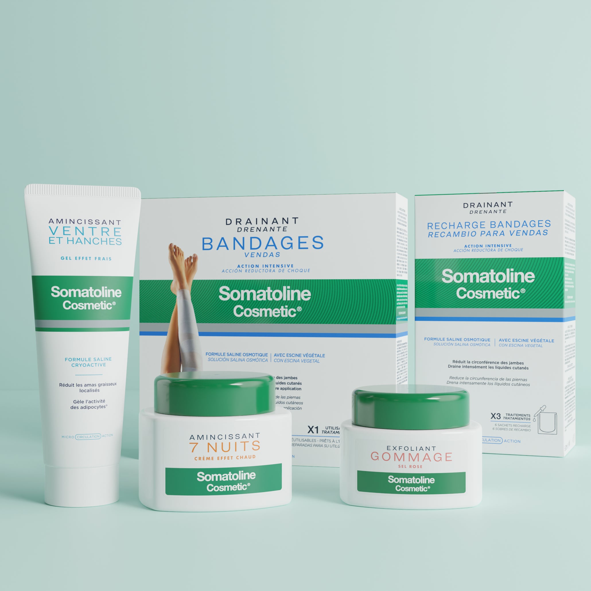 Posez les bandages sur une peau propre et sèche, en enroulant les bandes de la cheville à l'aine. Laissez agir 50 minutes.
