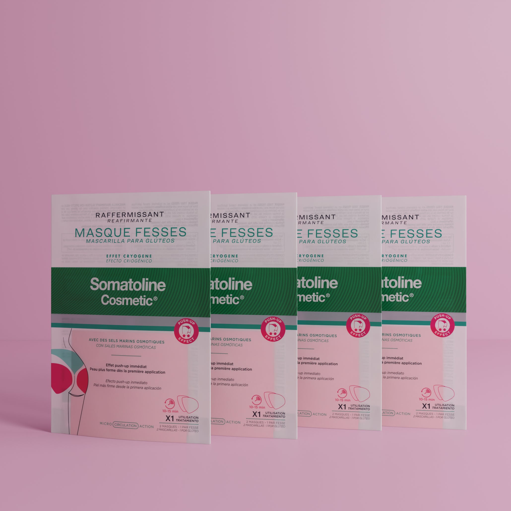 Pour une action complète sur les fesses, utilisez en combinaison le Somatoline SkinExpert Lissant Fesses Masque Exfoliant Perfecteur et la Crème Raffermissante Corps.